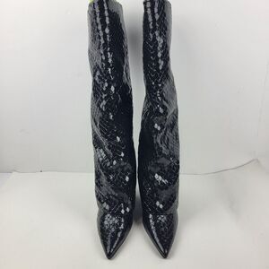 Steve Madden Paley Snake Embossed knee high Boot Pointed Toe wedge Black Size 6M