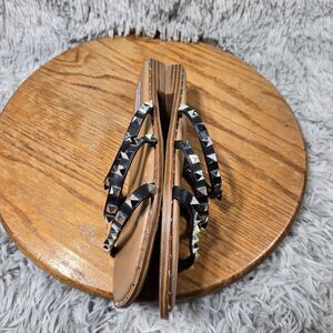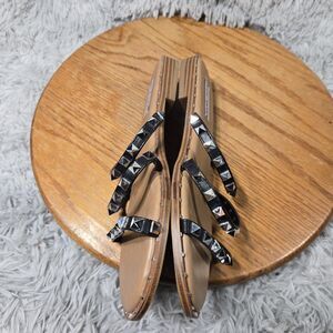 Steve Madden Palit Womens Size 9.5 Slip On Silver Pyramid Studded 3 Band Sandals