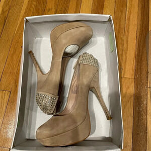 Steve Madden Parfait Blush Suede Diamond Bow High Heels Women’s Size 8.5