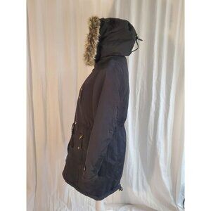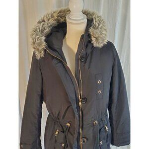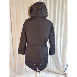 Steve Madden Parka Black Faux Fur Trim And Lining Removable Hood Sz M Penny Lane
