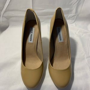 Steve Madden “UNITYY” camel colored patent leather classic pumps. Stiletto heel measures 3.75”. Worn once, in excellent condition.