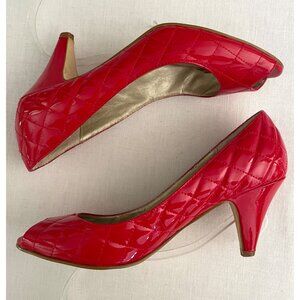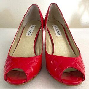 Steve Madden Patent Leather Heels Size 7 Red Peep Toe Pumps Quilted Stitch Heels