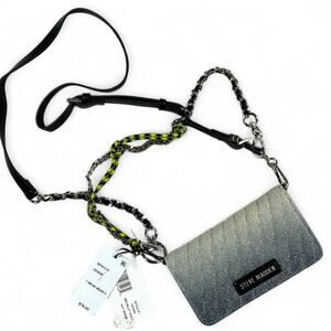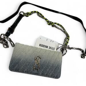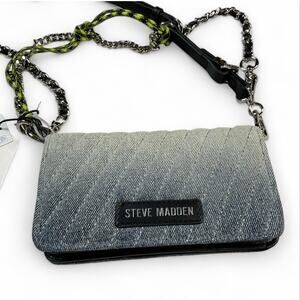 Elevate your style with this chic Steve Madden crossbody wallet! Crafted from trendy denim material, it features a convenient snap closure and card slots to keep your essentials organized. The double chain adds a touch of edgy sophistication, allowing you to wear it as a crossbody or shoulder bag.