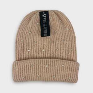 Steve Madden Pearl Embellished Cuffed Knit Winter Beanie Hat NEW