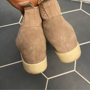 The perfect shoe for the sneaker-obsessed girl who needs a little extra lift, the Steve Madden Wedgie Bootie is an on-trend choice that delivers. Internal wedge is camouflaged beneath a suede upper with tonal stitching and sneaker construction. Dual side zips are functional and edgy. White contrast midsole is that sporty finishing touch that makes these Steve Madden Booties your new go-to. Suede upper Zipper at both sides Pull tab at back Fabric lining Rubber outsole 2.75-inch wedge.