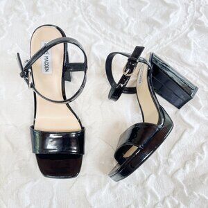 These heels are new and in great condition 5" heel, 1 1/4' platform Adjustable ankle strap with buckle closure Leather or textile upper/synthetic lining and sole Imported Retail price $110 + tax