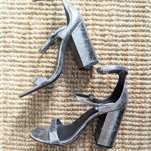 Steve Madden Pewter Parrson Block Heeled Strappy Sandals Size 9B.