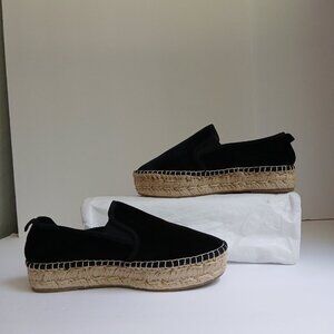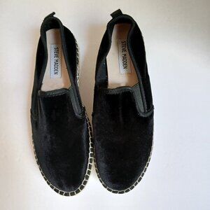 Steve Madden Phoebe-V Black Velvet Slip On Jute Espadrilles Size 6B