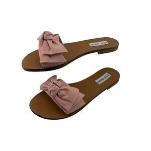 Stylish Steve Madden sandals. Features a pink bow design. Perfect for casual wear.