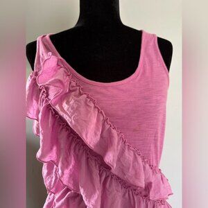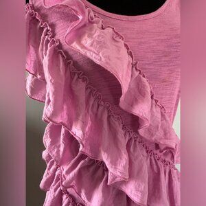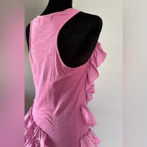 Chic pink sleeveless dress with cascading ruffles. Perfect for a stylish look.
