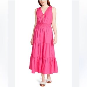Steve Madden Pink Tiered Maxi Dress Medium Sundress Resortwear Vacation Summer