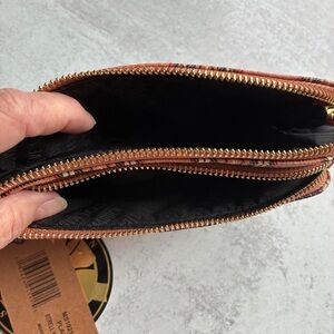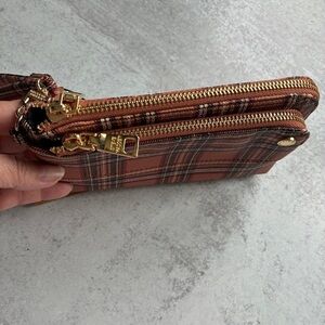 Steve Madden Plaid Dual Zip Wristlet Clutch in Red and Brown