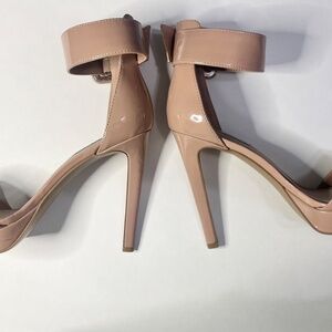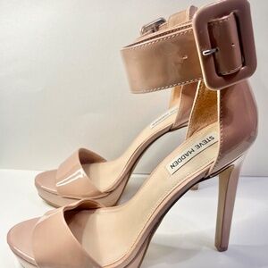 Steve Madden stiletto heel size 8. Not water resistant. Adjustable strap buckle. It's apparently a beige but I think it's more of a beige/light pink color.