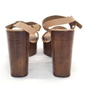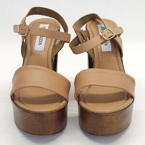 Steve Madden Laurisa Platform Sandals 7 Brown Tan Leather Chunky Heels Faux Wood Look