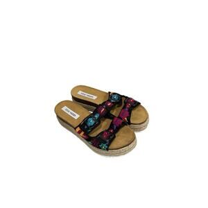 Steve Madden Platform Two Strap Floral Embroidered Sandals Womens 10