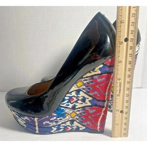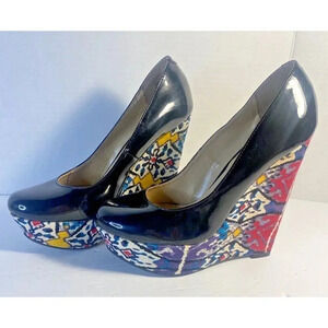 Steve Madden Platform Wedges Women's sz 8.5 Black Upper Multicolor Wedge