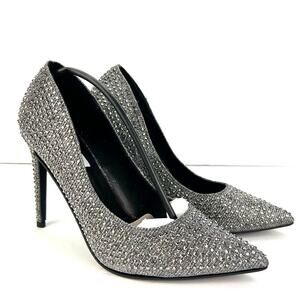 Steve Madden Poet Pewter RHINESTONE Studded Heels Size 6.5 w Box