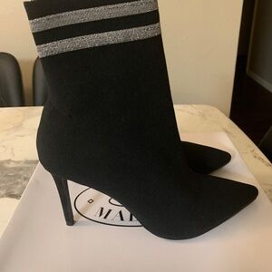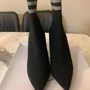 Only worn twice, black pointed toe ankle boots with silver stripes. Great condition size 7.5 with box original packaging.