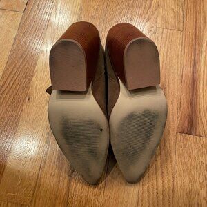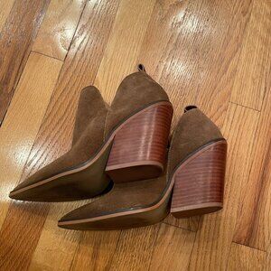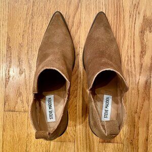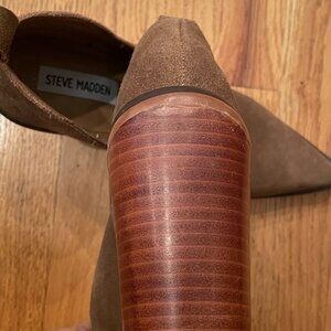 Steve Madden pointy toe suede bootie in size 8M. Hardly worn. Small discolor of wood at the top heel pictured. Approx. heel height 3.75". In great condition.