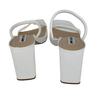 Tubular vamp straps amplify the contemporary allure of a trend-savvy slide sandal lofted by a subtle platform and wrapped block heel.