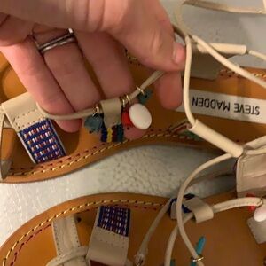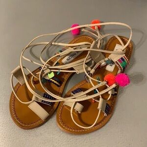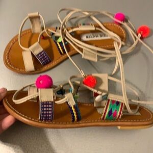 Steve Madden Pomppom sandals, size 7 multicolored leather bohemian beach strappy