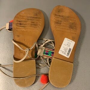 Steve Madden Pomppom sandals, size 7 multicolored leather bohemian beach. NWT. Never used