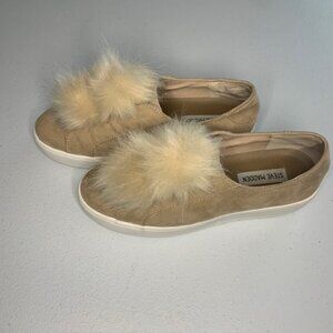 Steve Madden Poof Faux Fur Tan Platform Slip-On Loafers Shoes Suede-Like - Sz 9
