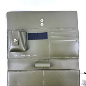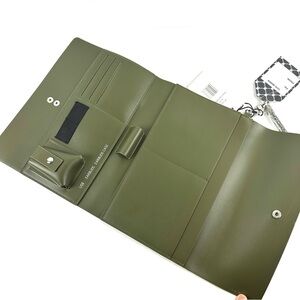 Steve Madden Pouch And Card Case Olive Green Faux Leather Clutch Brand New