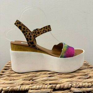 Steve Madden Prestyn Tie Dye & Leopard Platform Sandals 9