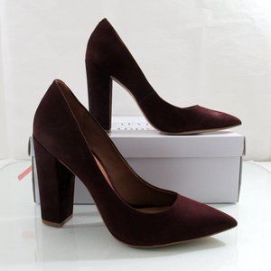 Steve Madden Primpy Pointed Toe Block Heel Dress Pumps Burgundy Nubuck Size 9.5