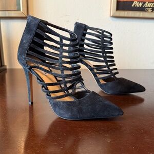 Steve Madden “Prowler” Black Suede Leather Cage High Heels - Size 9M