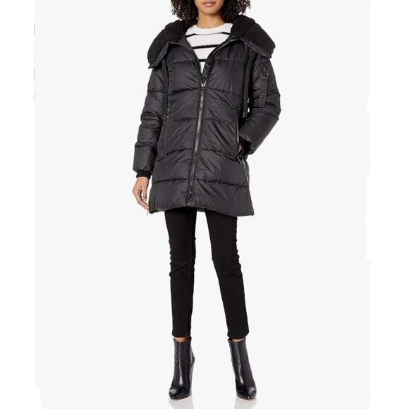Steve Madden Puffer Fleece Hooded Coat Zip Up Closure Women's Black Jacket Sz 3X