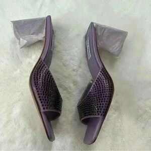 Steve Madden Purple Rhinestone Block Heel Slides Size 7.5 Retro 90s Hoco Bling