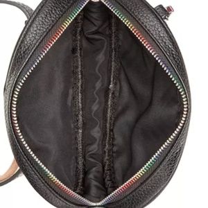 Fashion goes full spectrum on a Steve Madden belt bag detailed with chevron quilting and oil-slick hardware.