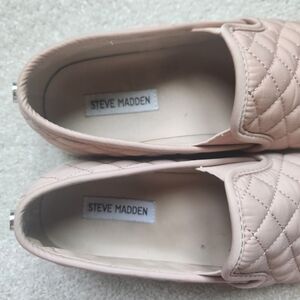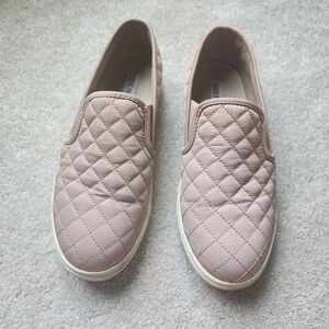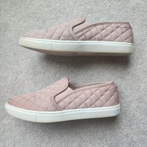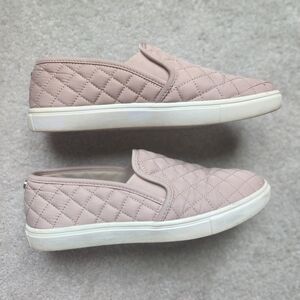 Step out in style with these Steve Madden, size 10, quilted slip-on sneakers. The pink design adds a chic touch to any outfit. Perfect for casual wear.