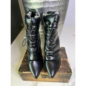 These fabulous NWOB Steve Madden Booties feature a plush quilted upper that can be cinched with a drawcord, pointed toe, and a stiletto heel. There are a couple of marks on the soles (see last pic), otherwise these are in excellent condition.