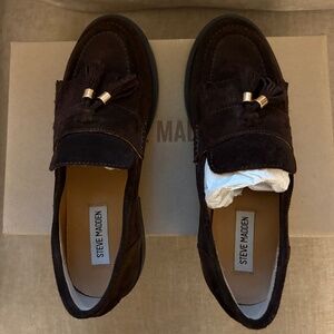 Elegant brown suede loafers with tassel detail. Comfortable and stylish for everyday wear.