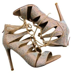 Steve Madden Radikel Rhinestones Gladiator High Heels Zip Lace Brown Size 6M