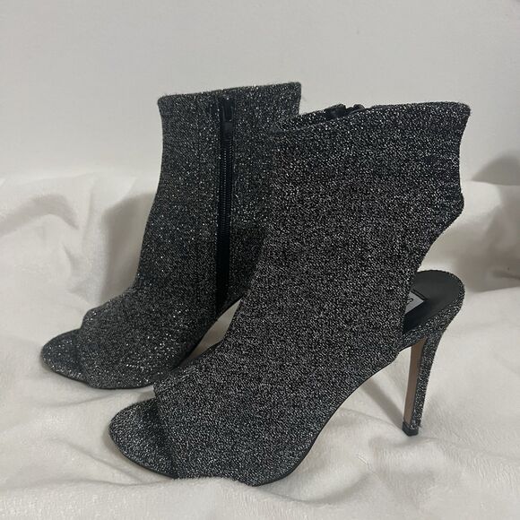 Steve Madden Rakel Sparkly Sock Bootie Size 6.5 M Black Silver Glitter Party