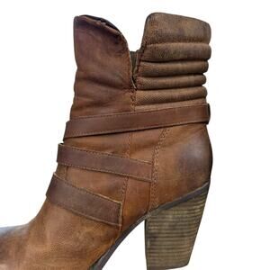 Steve Madden Raleighh Cognac Leather High Chunky Heel Boots Booties Shoes sz 8