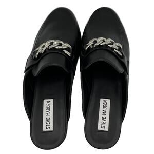 Steve Madden Rally Pointed Mule with Silver Chain in Black Size 9