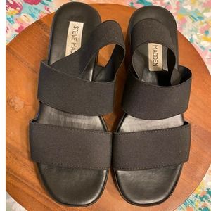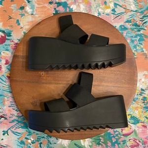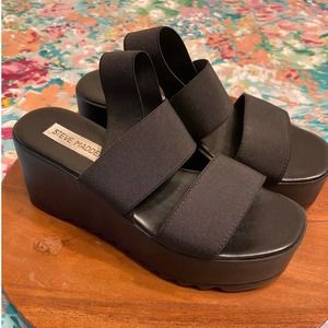 These are Steve Madden ‘Ramzi’ platform sandlas in excellent pre-owned condition.