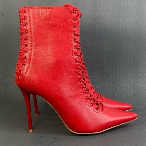 Steve Madden Red Allnight Leather Laced Stiletto Heel Booties womens size 7 new