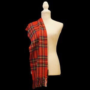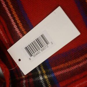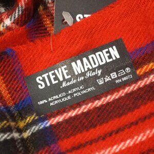Steve Madden Red Plaid Muffler Scarf. Approx. 11.5 inches by 66 inches (without Fringe). New with Tags. Made in Italy. 100% Acrylic.