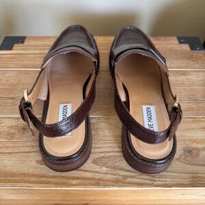 Steve Madden Reeves Brown Genuine Leather Gold Hardware Sling Back Loafer Size 8