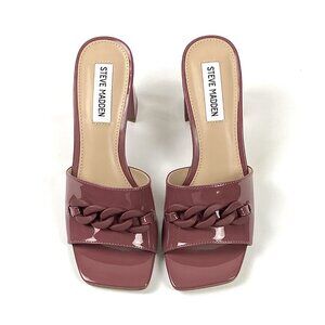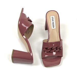 Steve Madden Rego Mauve Patent Block Heel Square Toe Slide Sandal 6.5