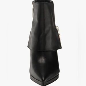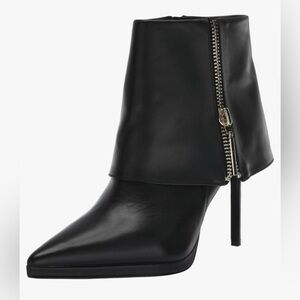 Steve Madden Renee black leather cuffed foldover pointy toe stiletto Ankle Boots size 11 brand new