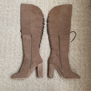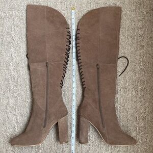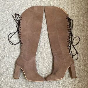 Steve Madden Revolvee Over the Knee Suede Leather Lace Up Block Heel Boho Boots