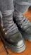 Sleek black combat boots with lace-up design. Features silver eyelets and rugged sole. Stylish and durable.