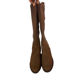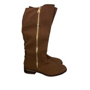 Steve Madden Rhapsody Almond Toe Brown Suede Boots in size 8.5. Gently used with side zippers.